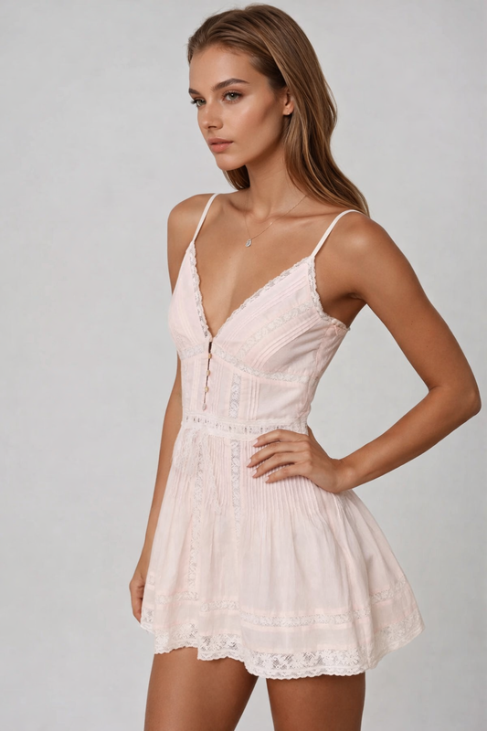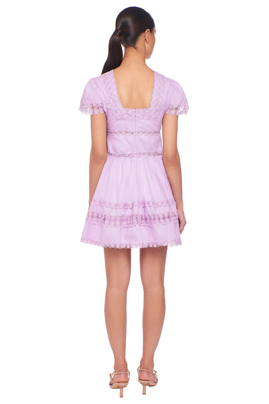 LOVESHACKFANCY Zirelle Pink Cotton Lace-Trimmed Mini Dress