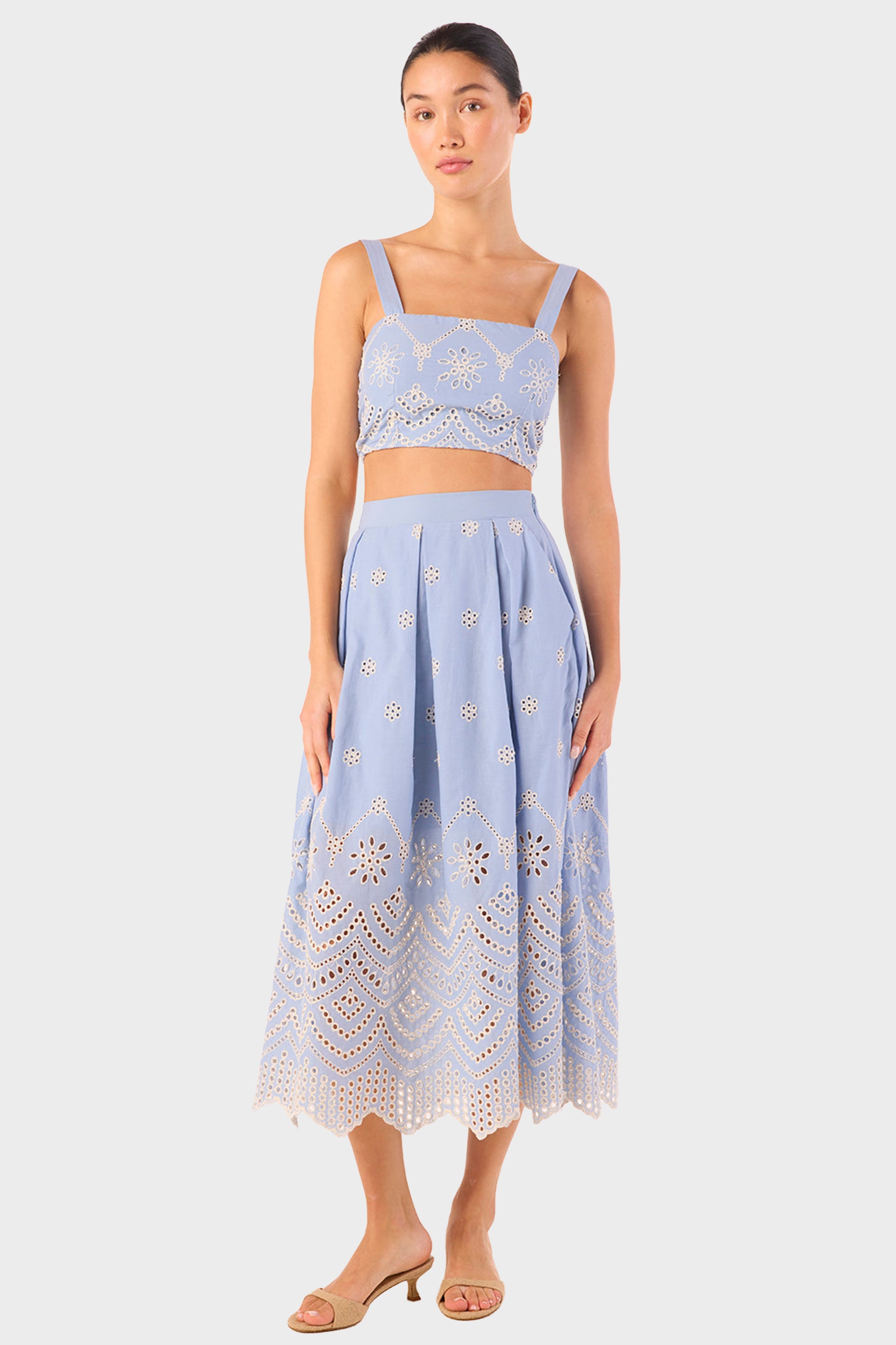 - Scallop eyelet hem skirt