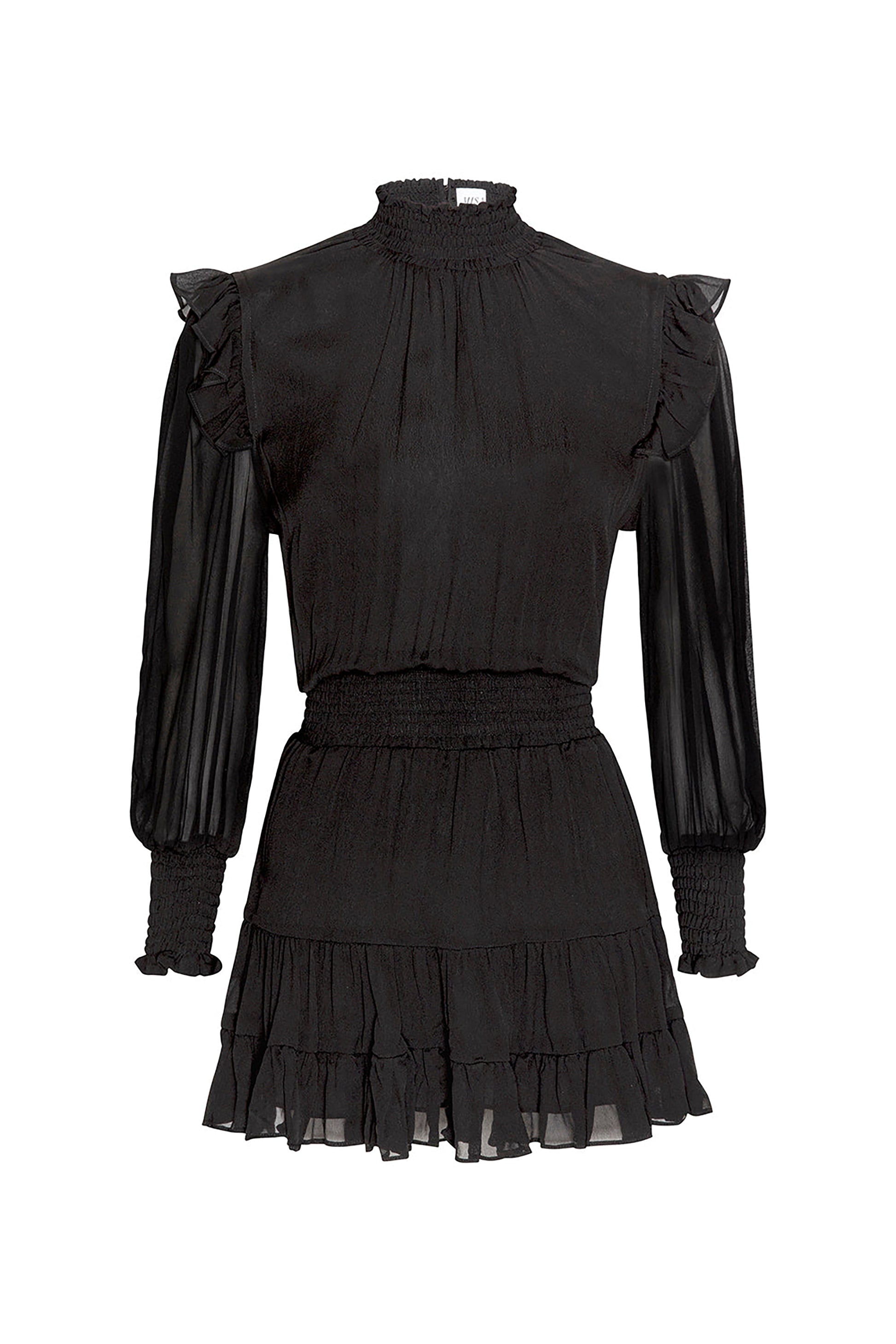 - Sheer blouson sleeves finished with smocked cuff
