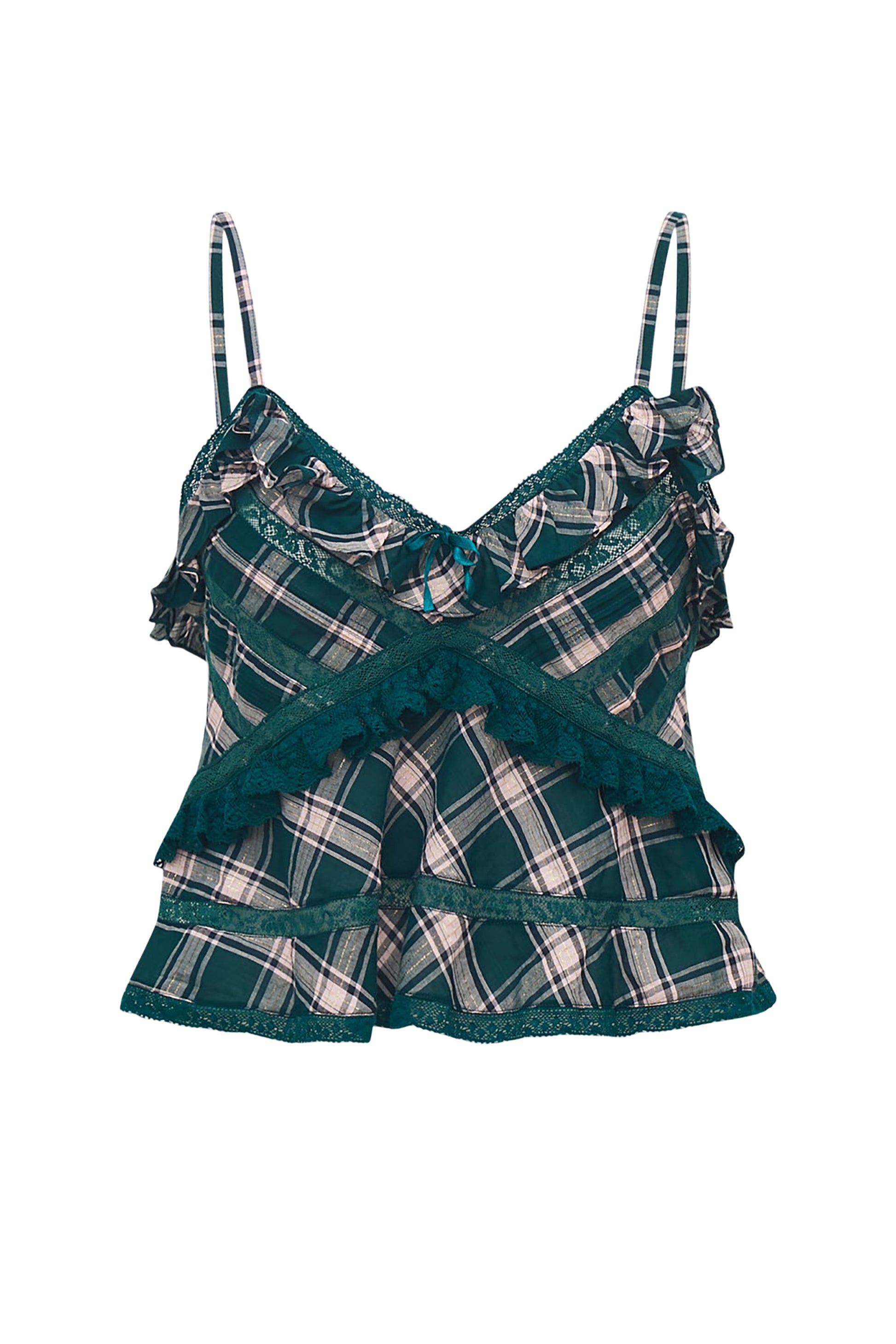 LOVESHACKFANCY Sormina Tartan Cotton Top