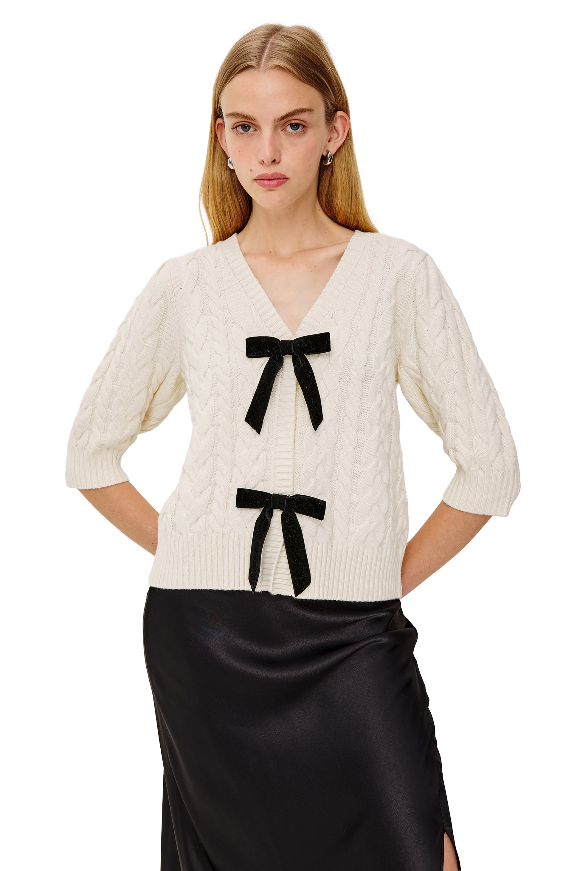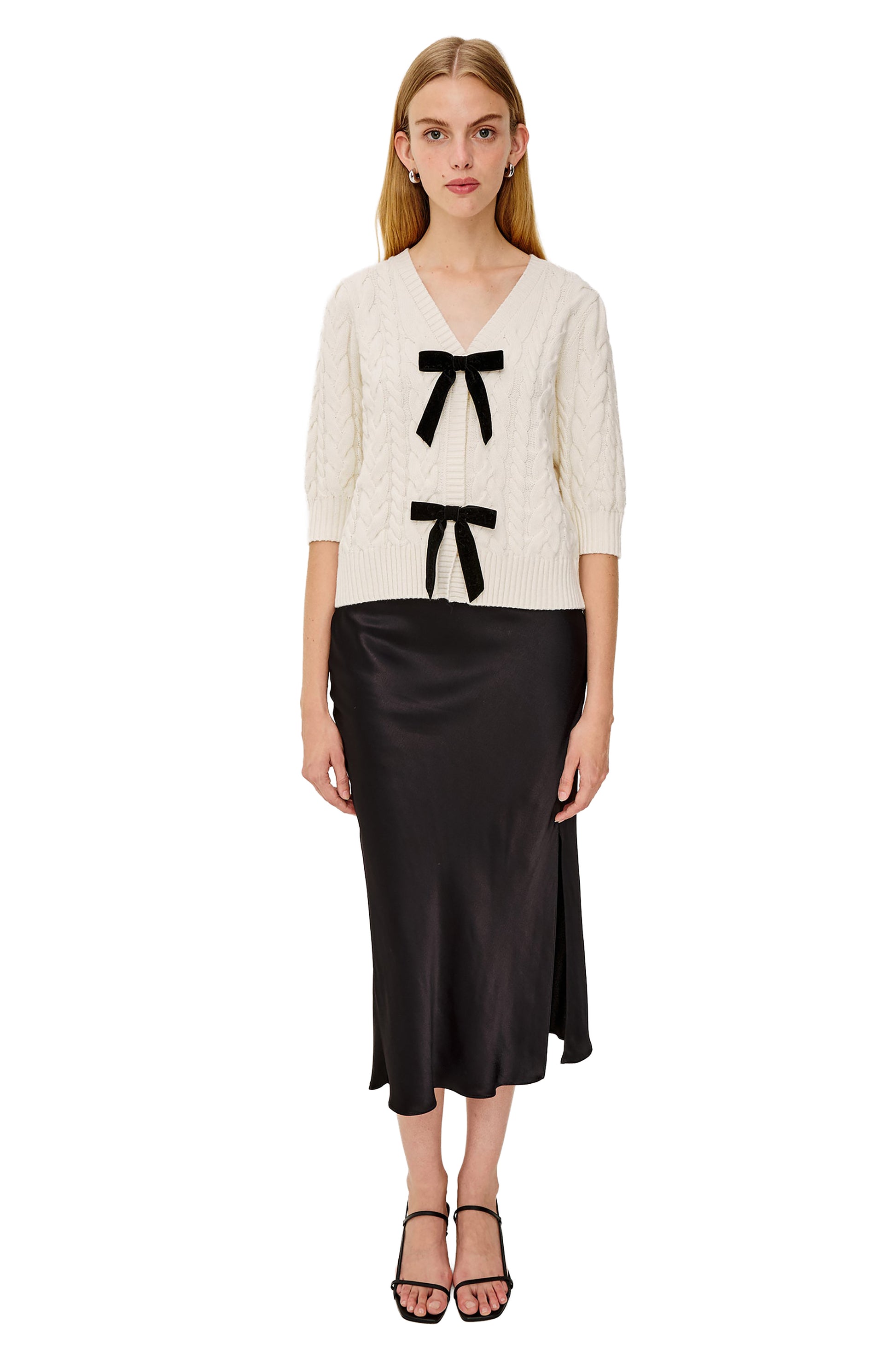 - Snap front closures, bow-trims