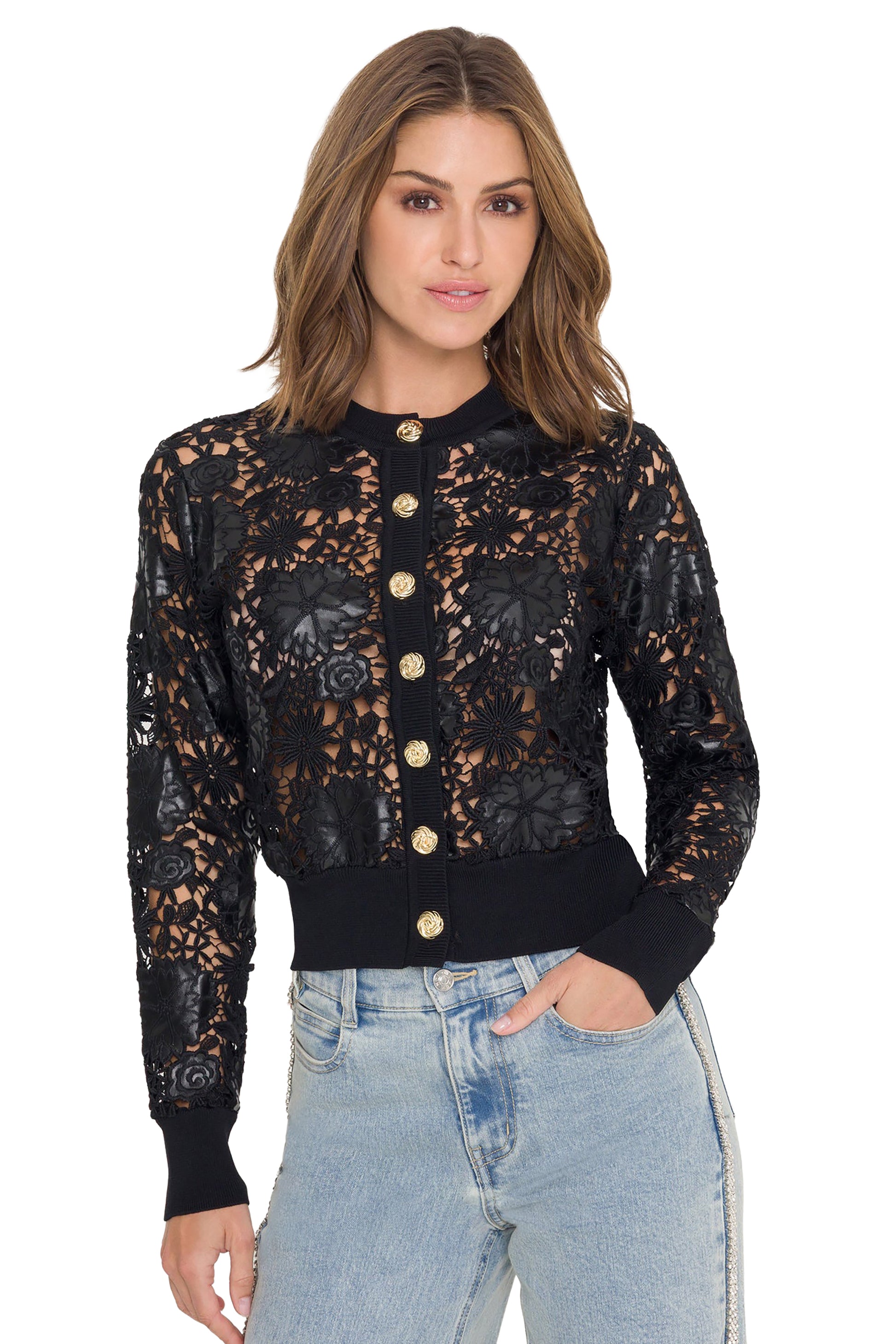 Generation Love Erin Vegan Leather Lace Cardigan