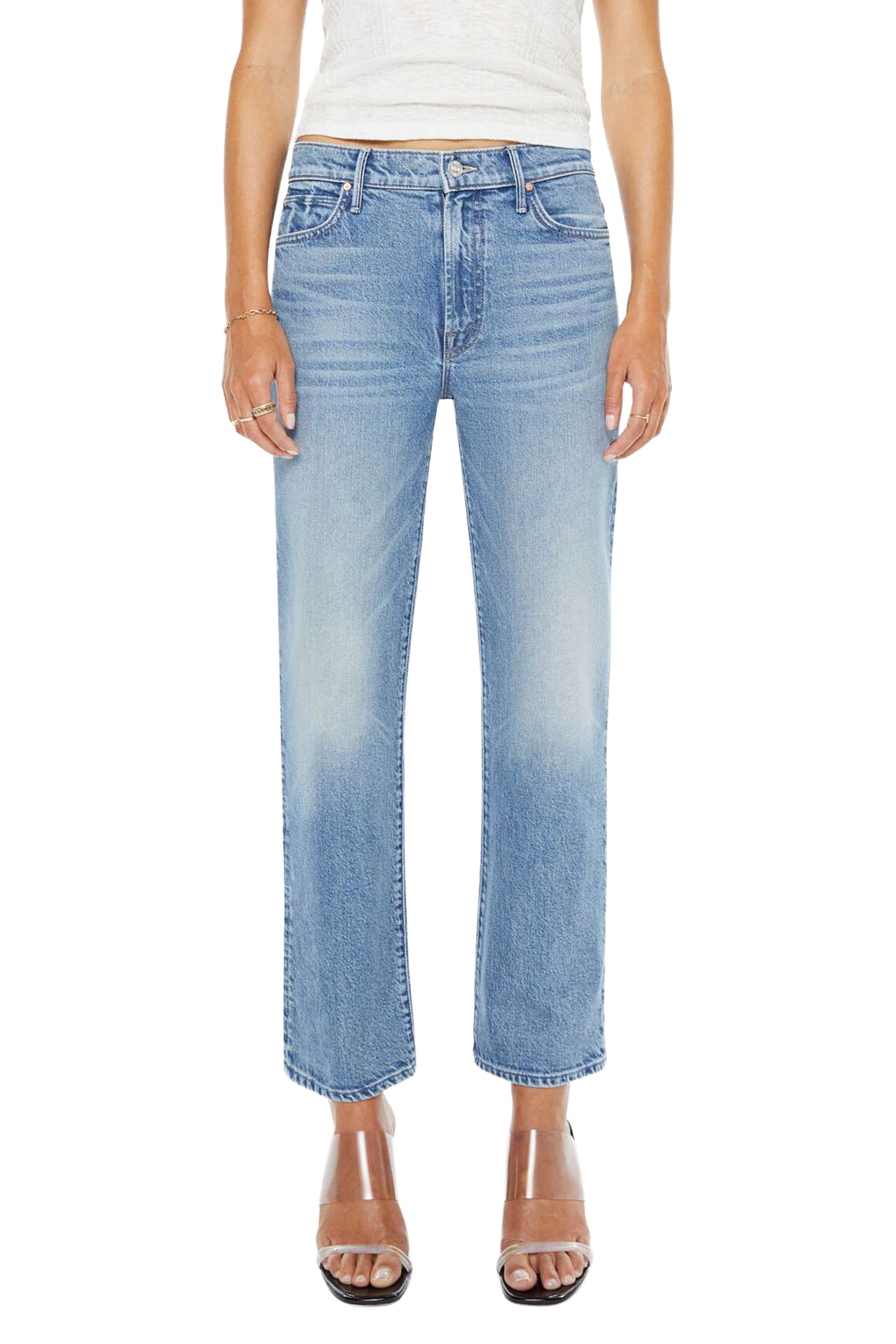- Zipper fly with button closure